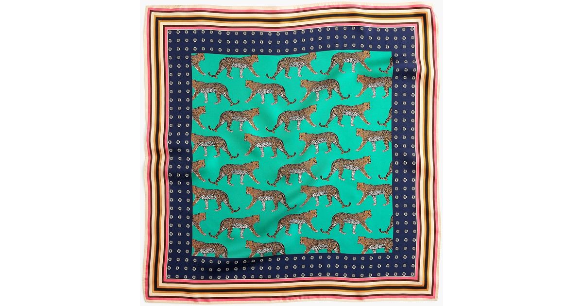 J Crew Square Silk Scarf In Tiger Foulard In Green Lyst
