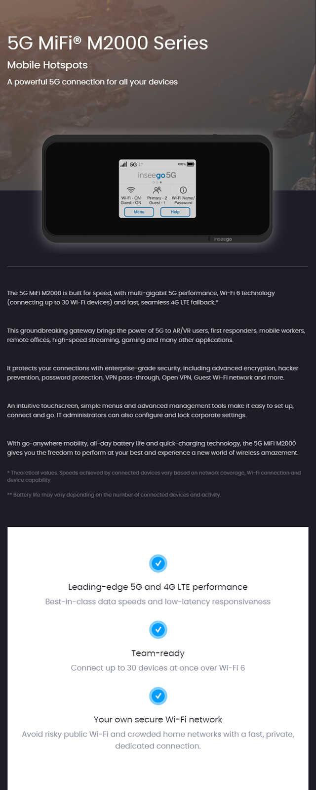 T-Mobile is selling the MiFi M2000 for 336 or 14. The 5G MiFi M2000 Hotspot supports various bands such as low-band 5G mid-band 5G and 7-band aggregation for the carriers 4G LTE network. USM is adding to its 5G device offering with the launch of its first 5G mobile hotspot the Inseego Nasdaq.