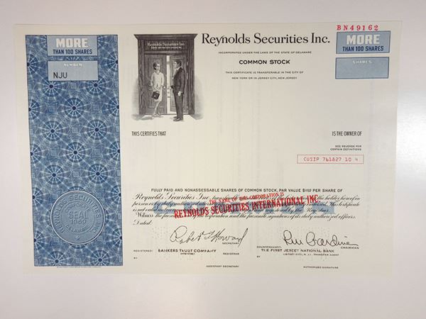 Reynolds Securities Inc 1976 Specimen Stock Certificate