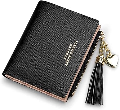 Amazon Com Small Wallets For Women Girls Teens Slim Wallet Ladies Purse Cute Leather Thin Coin Zipper Minimalist Elegant Black Small