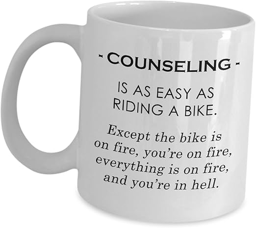 Amazon Com Mental Health Counselor Gifts Coffee Mug Funny Cute Gag Appreciation Cup Behavior Therapy Clinical Counselors Practitioner Service Care Team Counseling Is As Easy As Riding A Bike On Fire