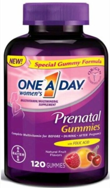 Percentage Daily values are based on a 2000 calorie dietYour Daily values may be higher or lower depending on your calorie needs. One A Day Prenatal Gummies I like the presentation of the prenatals in gummies because they make taking the vitamins easier they have a rich flavor and it is very pleasant to eat them besides they help to have the folic acid that is needed and all the nutrients before during and after pregnancy. One A Day Prenatal Gummies offer a wide variety of key nutrients in a convenient gummy vitamin designed for women before during and after pregnancy.