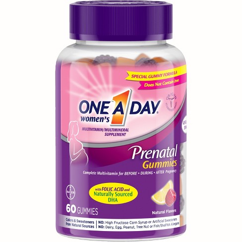 One A Day Womens Prenatal Gummies. One A Day Womens Prenatal Multivitamin Gummies Supplement for Before and During Pregnancy Including Vitamins A C D E B6 B12 and Folic Acid 60 CountOneADay Prenatal Gummies do not contain iron.