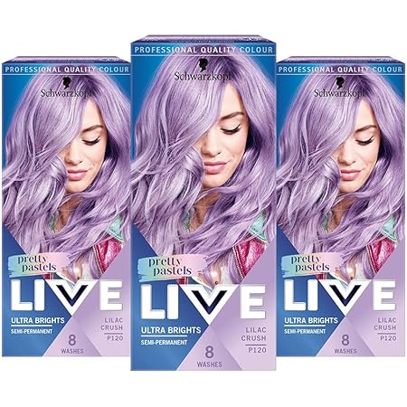 Schwarzkopf Live Ultra Brights Pretty Pastel Purple Hair Dye 3 Pack Semi Permanent 8 Washes P120 Lilac Crush Amazon Co Uk Beauty